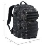 • Military Tactical backpack size approx.:13″*20″*11″ / 33*50.5*28CM (W*H*D),Capacity: 40L; Military backpack is made of high density fabric–durable and water-resistant