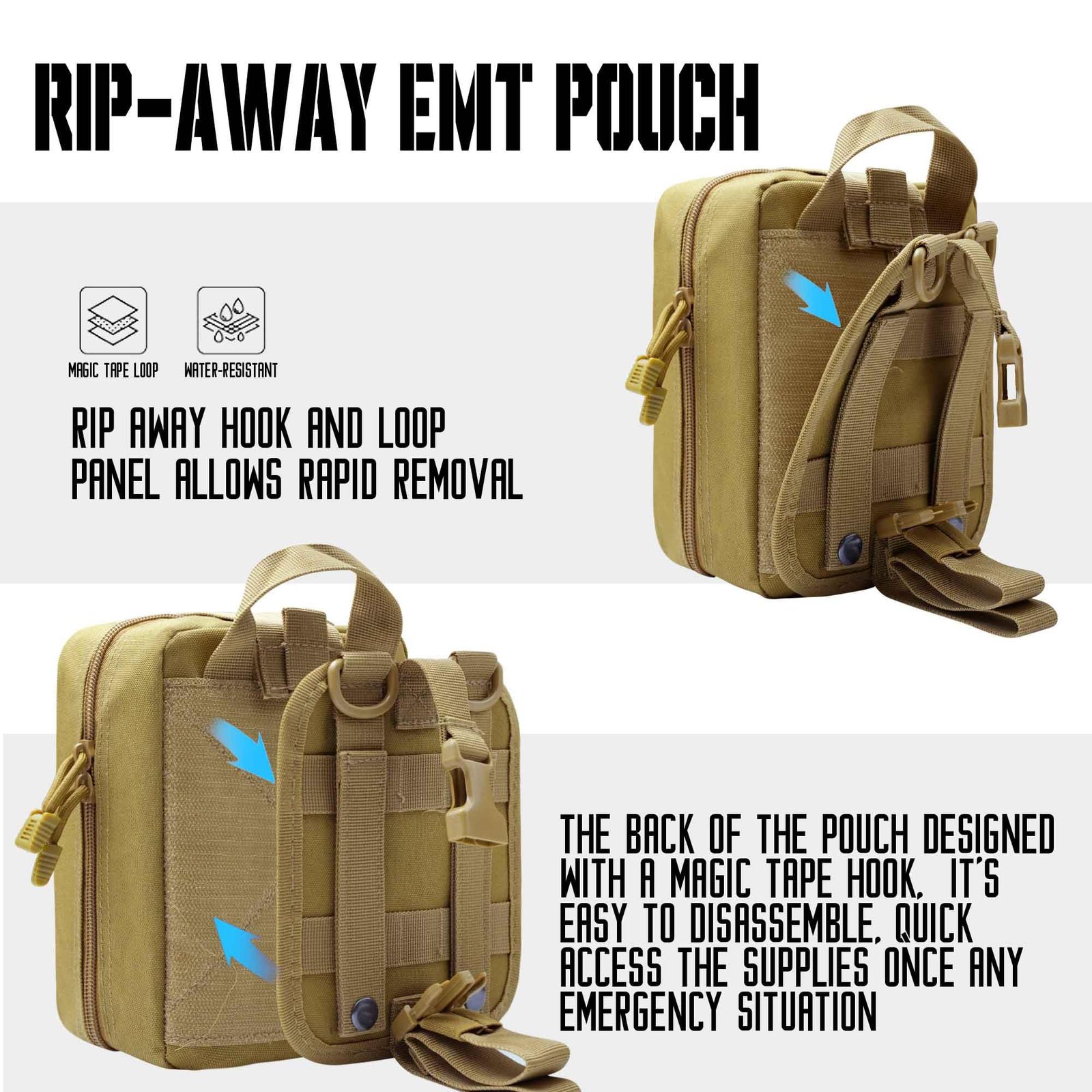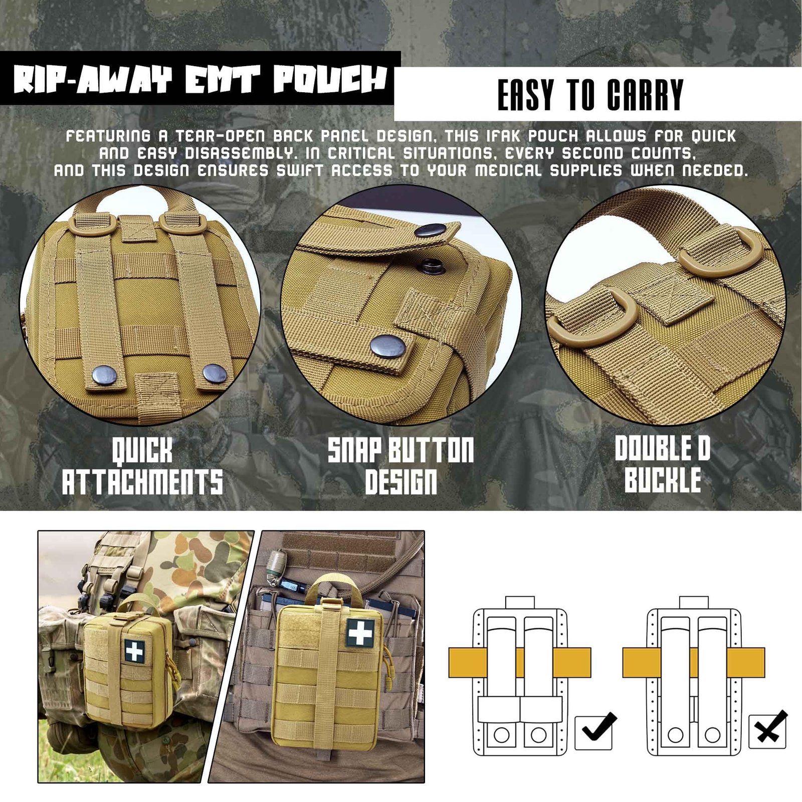 Tactical Medical Pouch with MOLLE System, Rip-Away Utility Pouch for First Aid, Outdoor and EDC Use
