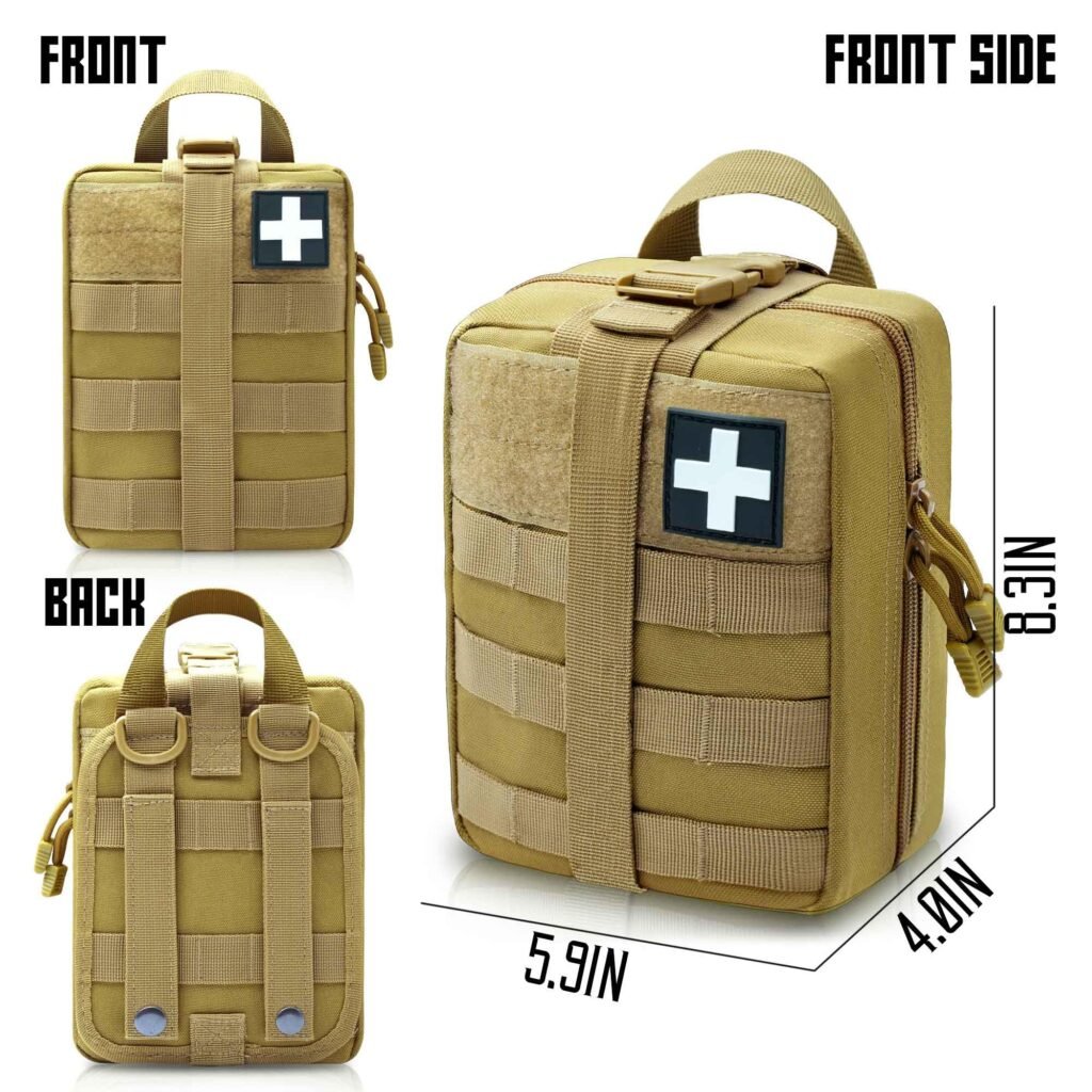 • IFAK POUCH SMALL SIZE & LARGE CAPACITY:Our molle ifak pouches size is:8.3″H X 5.9″W X 3.9″D, multiple pockets and compartments, which can be classified to store important first-aid kit. Small size, easy to carry. Large capacity can store more items you need when you go out. Our medical pouch is a good assistant for your camping, mountain climbing and traveling.