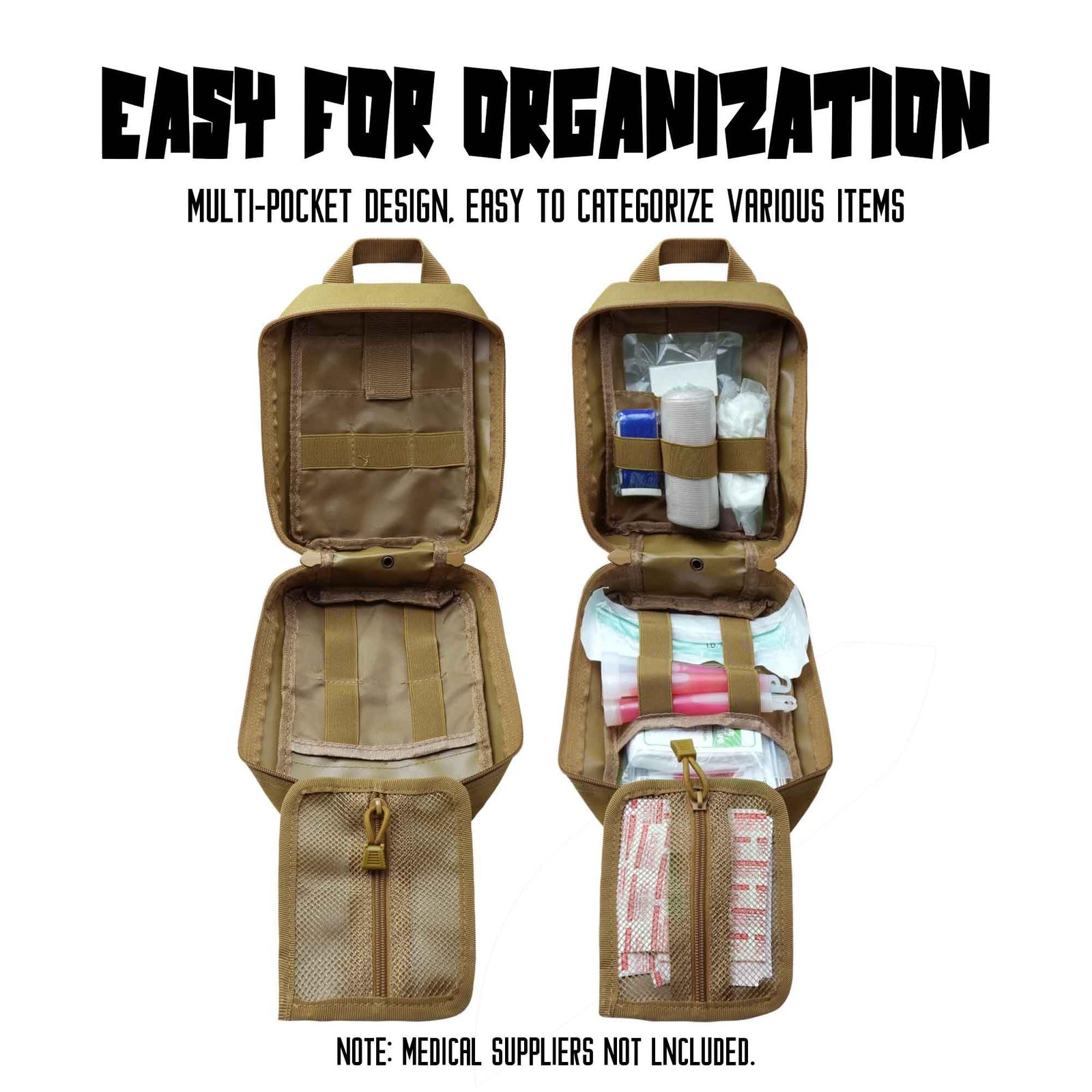 This tactical utility pouch is suitable for hiking, camping, outdoor activities, emergency preparedness, training, and EDC applications where quick-access medical storage is required.