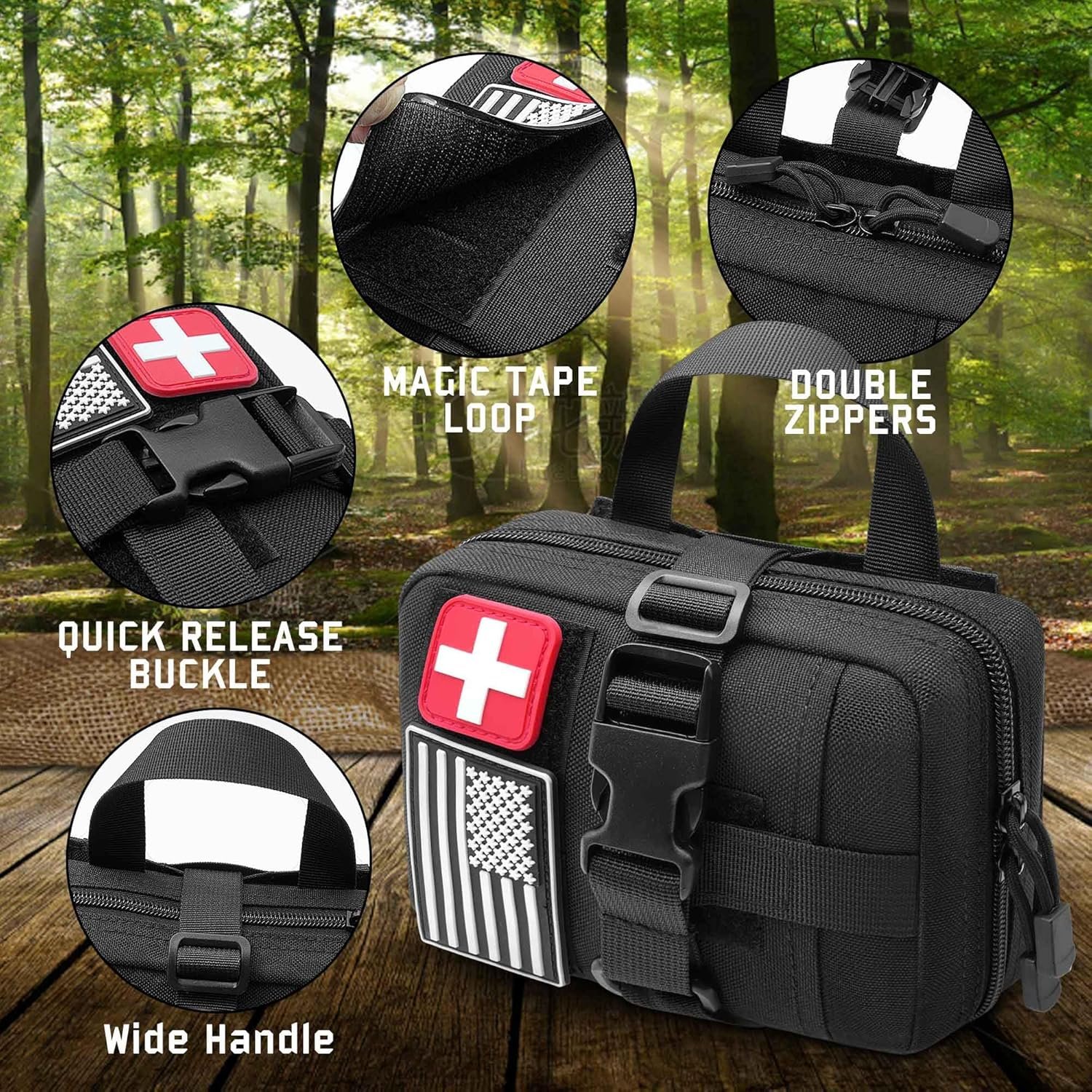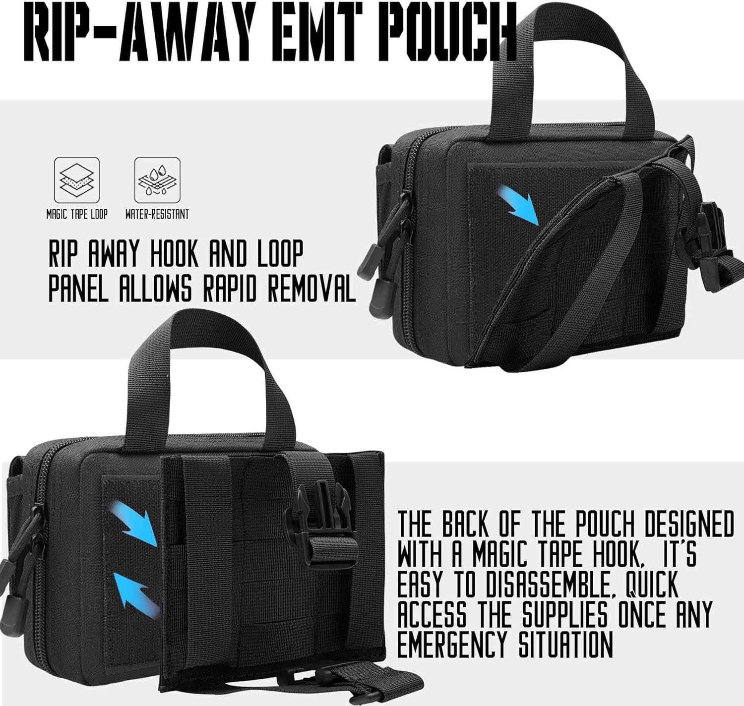 【Easy & Quick Access】: Equipped with rip-away design for rapid removal, allowing you to quickly take out needed supplies in emergencies. Features two-way metal zippers with silent cord pulls, enabling full opening for easy and fast access to first-aid items. Durable zippers ensure better protection of emergency supplies.